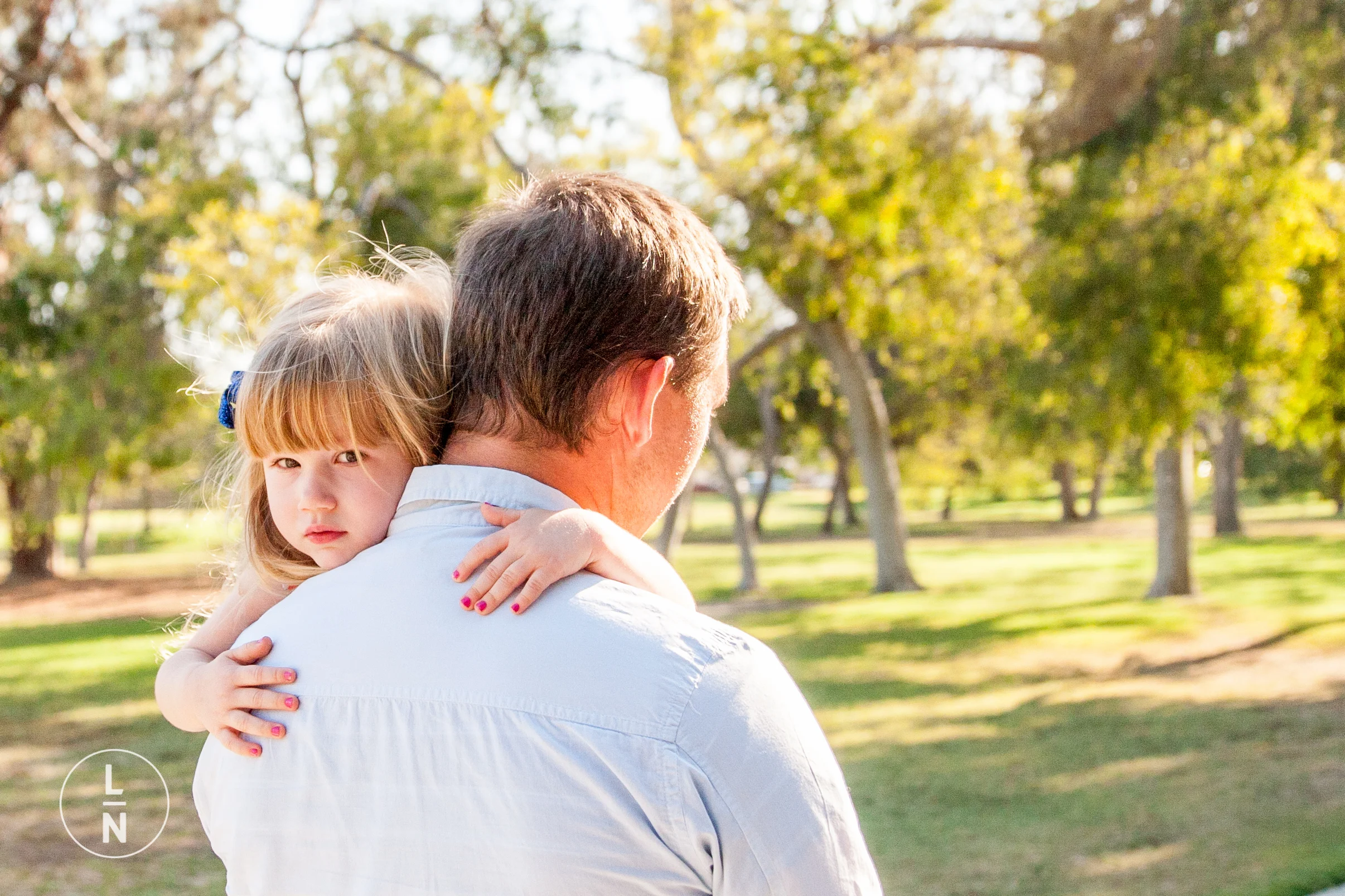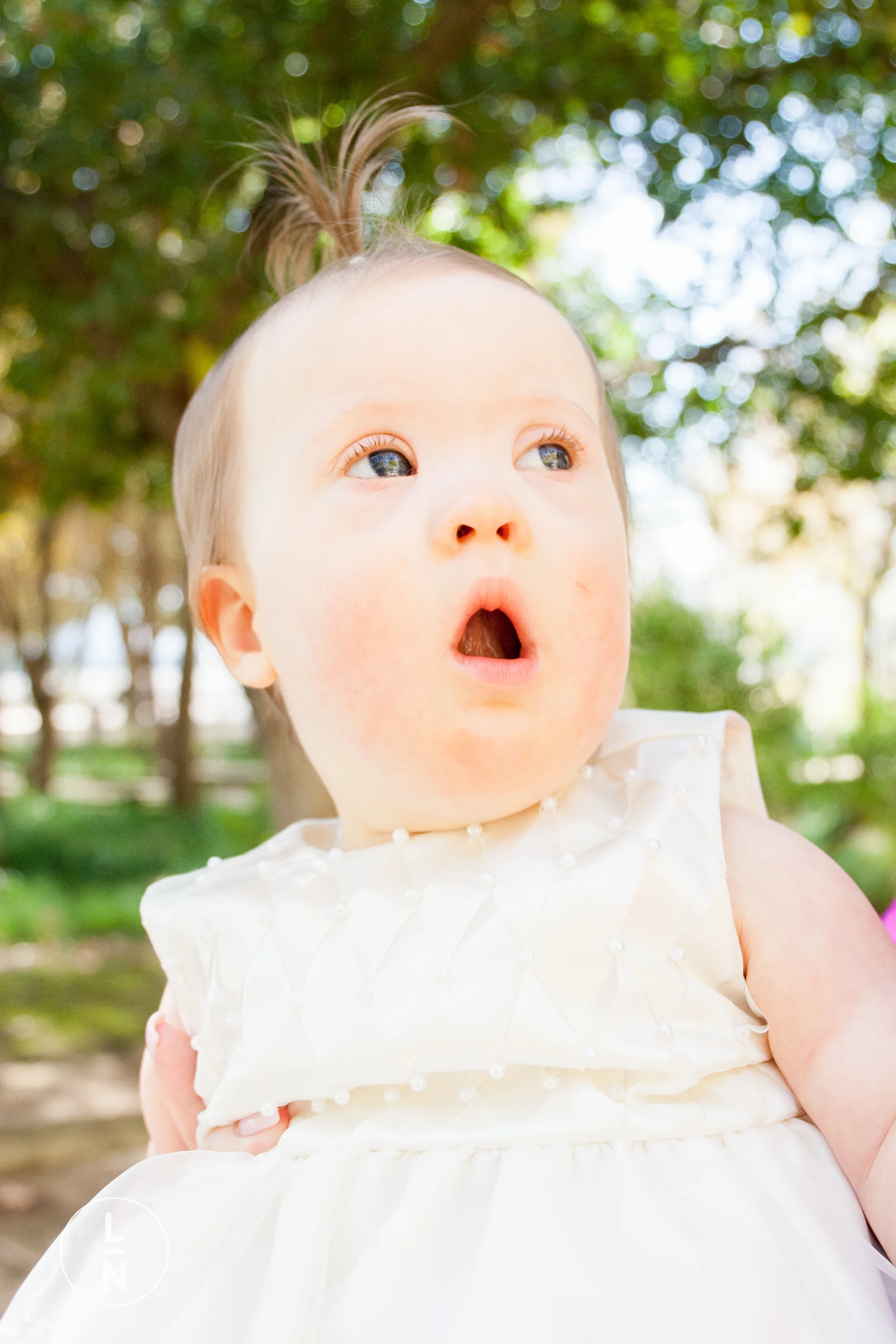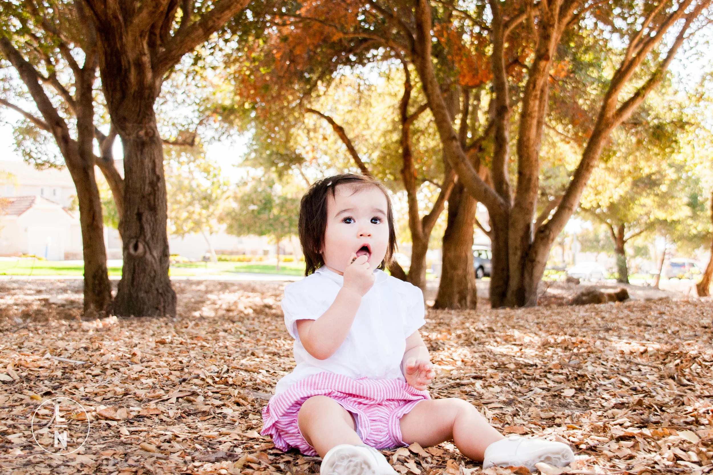 We decided to do the photos at a park nearby, and the lighting was perfect. It was also McKenzie's first time seeing tanbark and she immediately wanted to see what it tasted like, which made for some really funny photos.