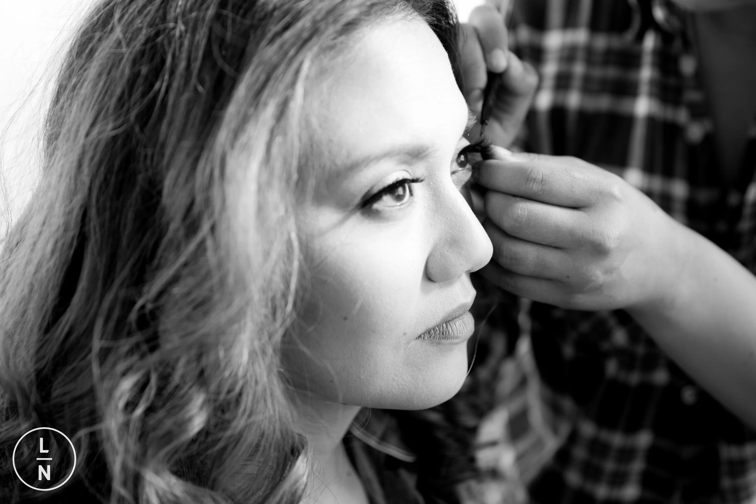 Dana is made up and ready to get into her gown.