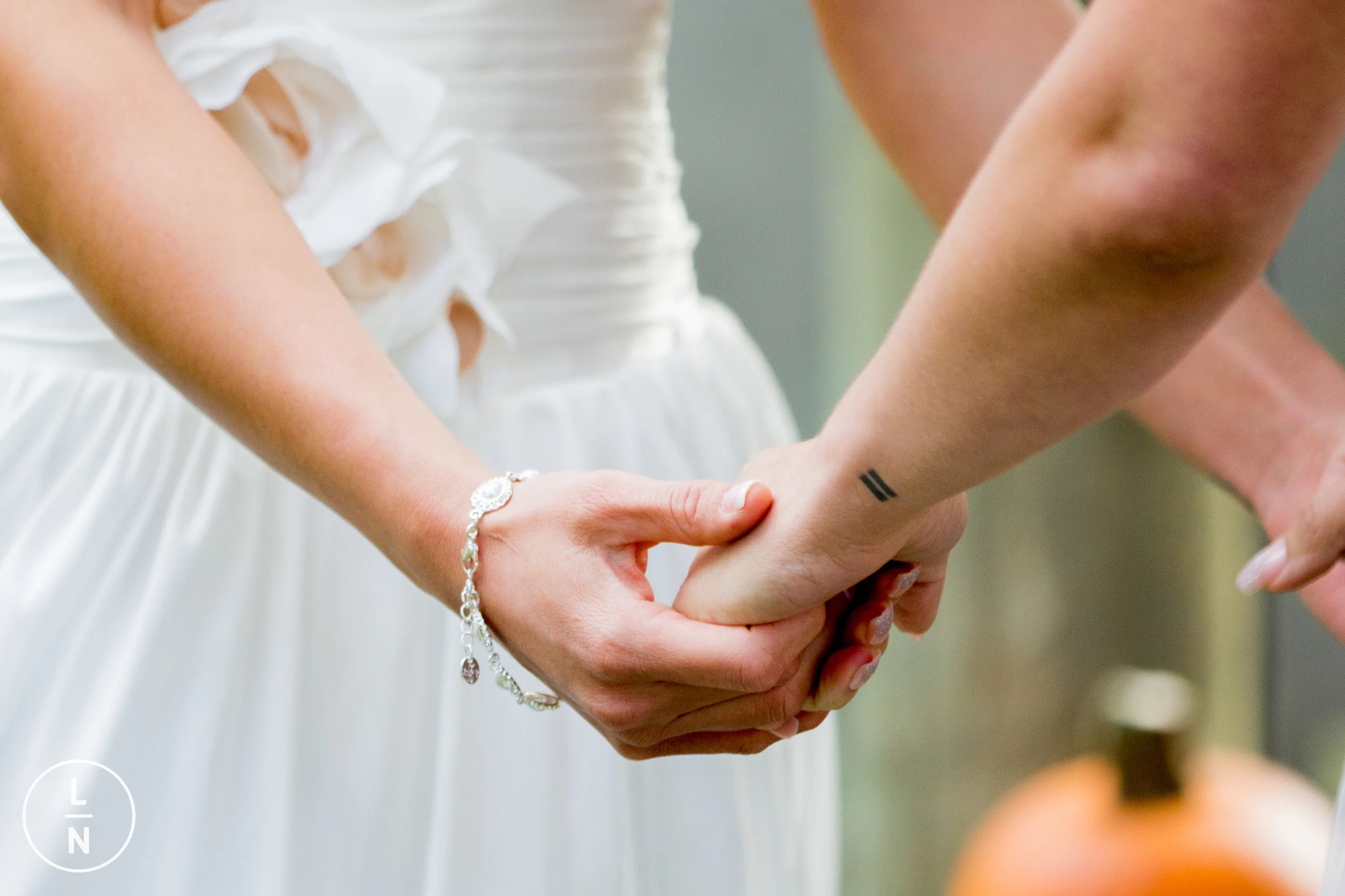 The brides managed to avoid each other all day and never saw one another despite having to set up for the wedding. These brides were very hands-on with preparations!