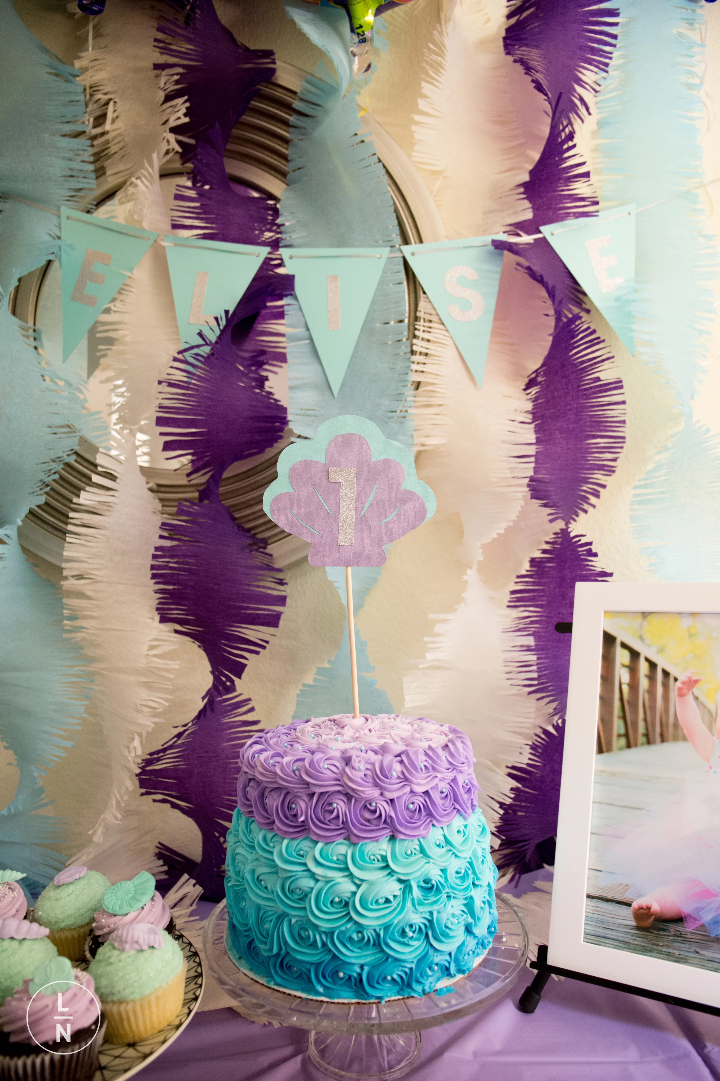 On Friday we celebrated her birthday with some friends complete with a smash cake! Her actual cake matched her dress perfect with all the beautiful swirls.