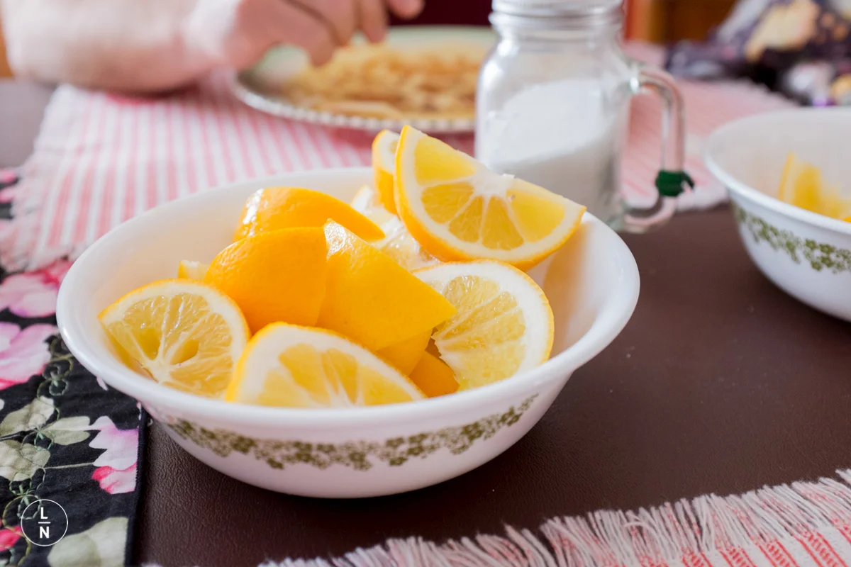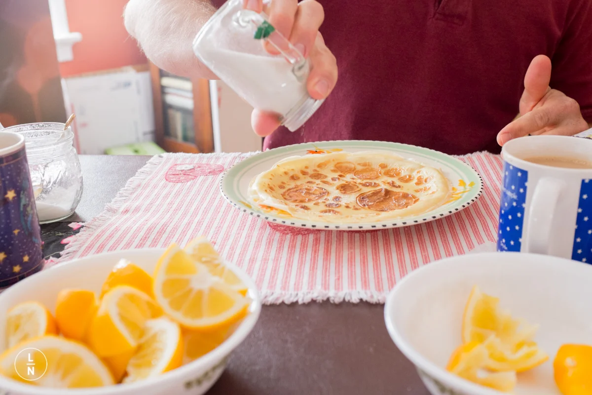 Tuesday, February 17 is pancake day and I wanted to share some photos from this past Sunday. Ian's mom made traditional pancakes that we then squeezed fresh lemon juice over and sprinkle some sugar on top, then roll up and enjoy.