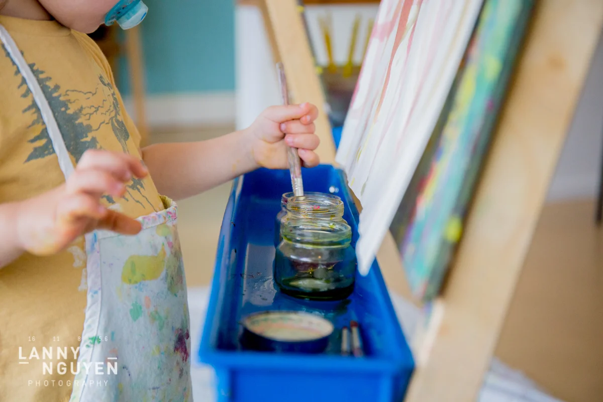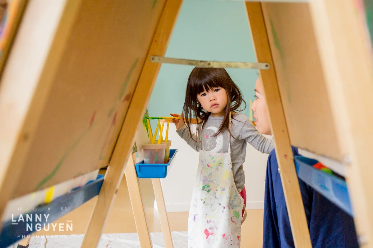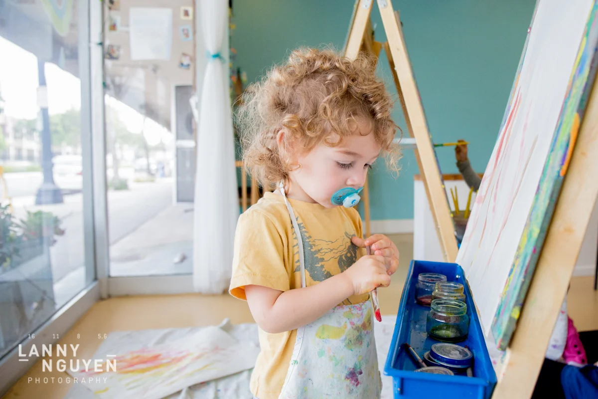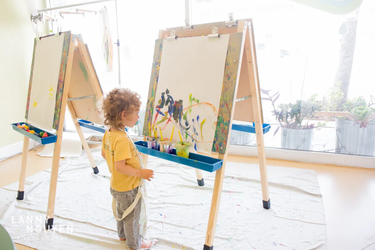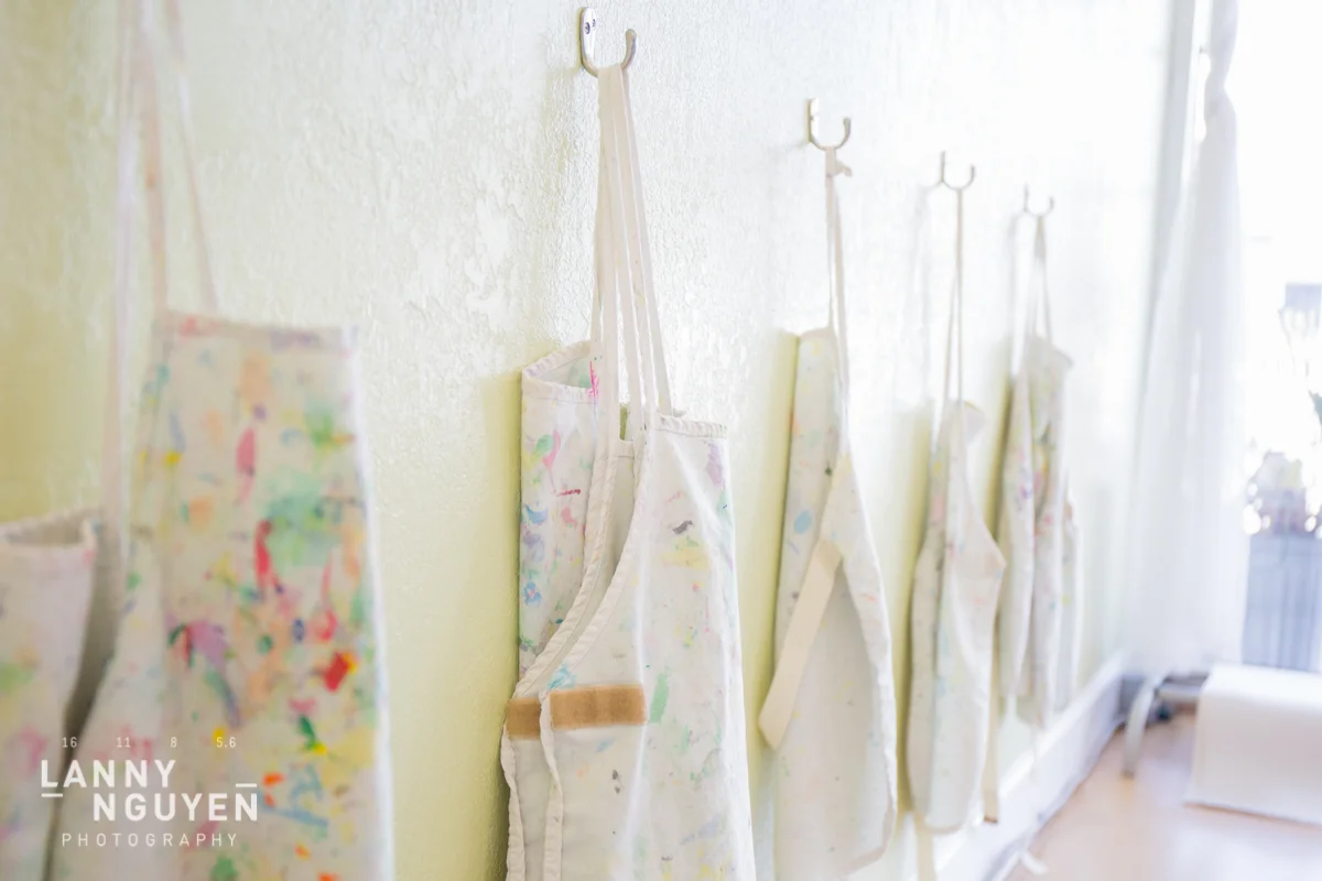On one of the days, My friend Michelle and her daughter met up with us and we went to an open art studio for children and it was a lot of fun. Can't get over how adorable those tiny aprons were still too big for them! Here are some photos of the tykes doing art.